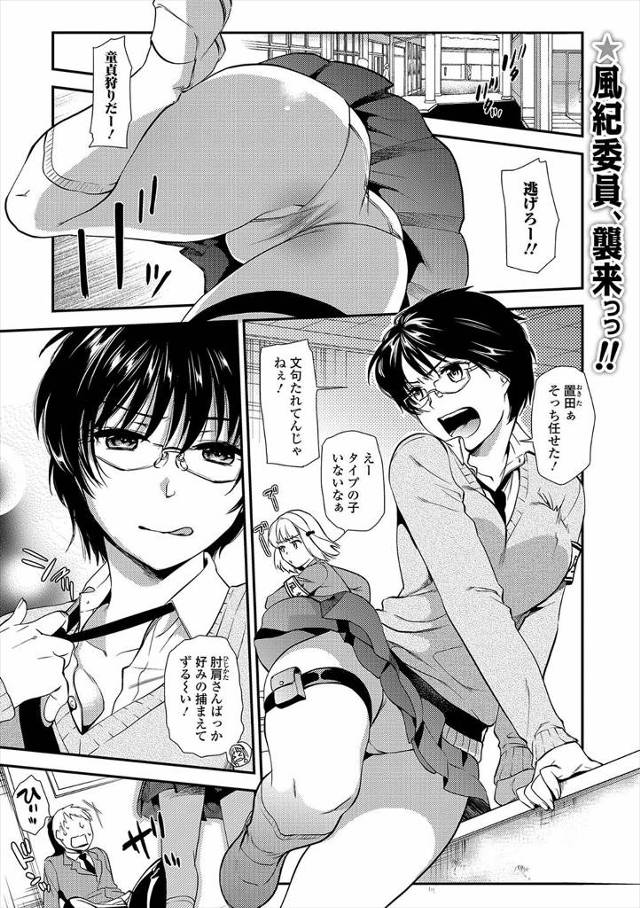 【エロ漫画】童貞を撲滅してる風紀委員の鬼の副長JKが男子の童貞心につけこみ勃起させ屋上で野外セックス...