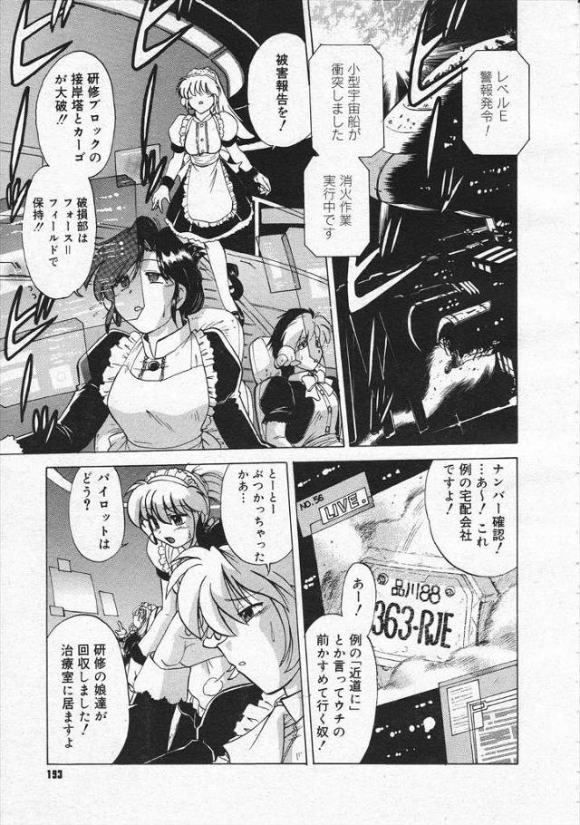 【エロ漫画】メイドを雇っていた男の宇宙船が、メイドの会社に突っ込んでしまい、男が身体検査されて巨根を...
