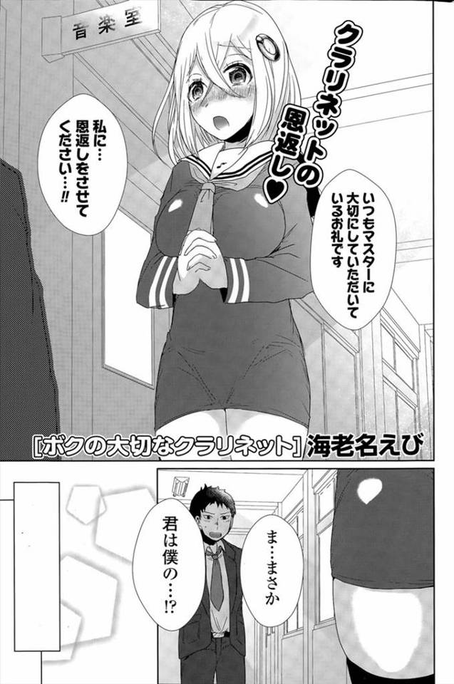 【エロ漫画】恋人のように大事にしていたクラリネットが擬人化してお礼のエッチ、興奮した男が巨乳でパイズ...