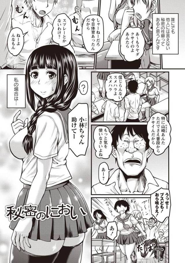 【JKエロ漫画】臭いにおいが大好きな変態女子高生!オナニーしちゃってブスでワキガな男にハメられちゃう...