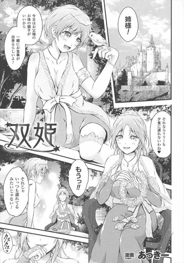 【エロ漫画】お互いのことを好きな王女二人が、継母の王妃の悪巧みで魔術師にふたなりちんぽを生やされて中...
